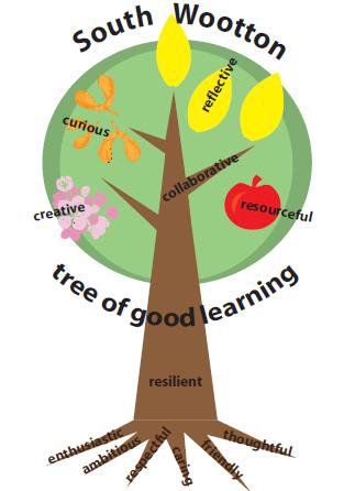 At South Wootton Infant School, we believe children learn best when they are provided with a wide range of rich, memorable, first-hand learning experiences. This is achieved through visitors and school trips, learning cafes where families are invited into school. We embed the three characteristics of effective learning (playing and exploring, active learning, and creating and thinking critically) into our EYFS setting through continuous provision play opportunities, adult led activities and challenges that the children self-select. We follow our whole school ‘Tree of Good Learning’, we give clear aims as we want our children to be: